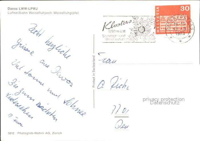 alte Postkarte Seilbahn Weissfluhjoch-Weissfluhgipfel Davos postalisch gelaufen Erhaltung siehe scans