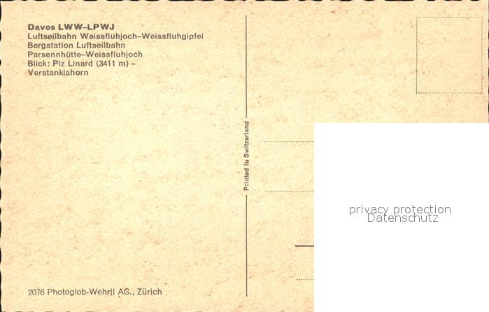 Seilbahn Weissfluhjoch-Weissfluhgipfel Davos Bergstation Piz Linard postalisch nicht gelaufen Erhaltung siehe scans