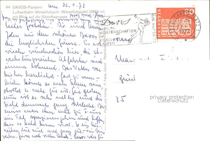 alte Postkarte Seilbahn Weissfluhjoch-Weissfluhgipfel Davos-Parsenn Silvrettagruppe postalisch gelaufen Erhaltung siehe scans