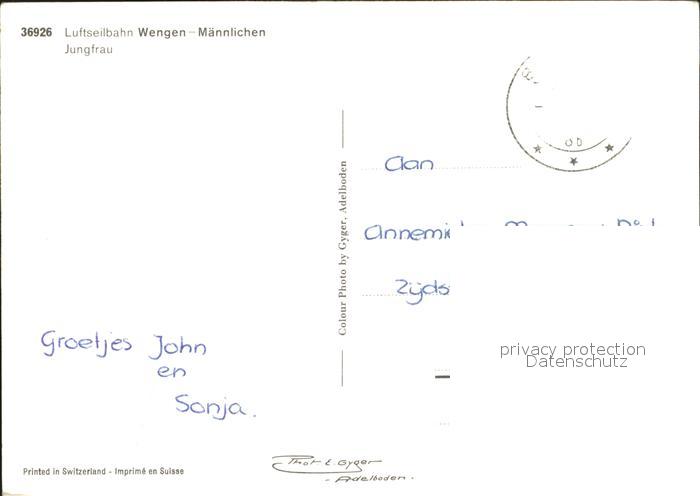alte Postkarte Seilbahn Wengen-Maennlichen Jungfrau postalisch gelaufen Erhaltung siehe scans