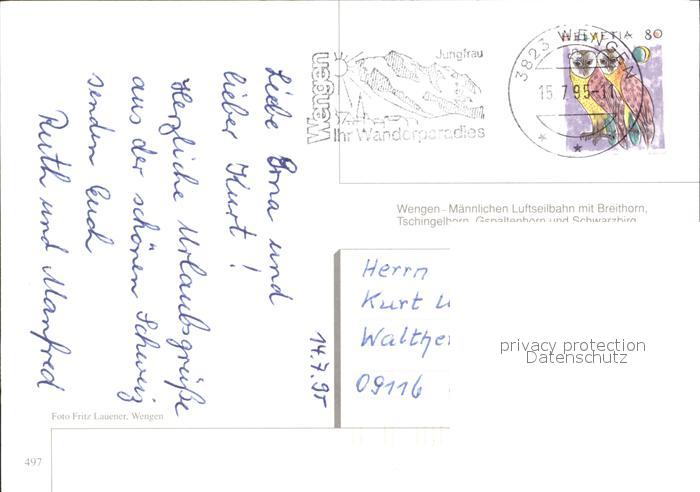 alte Postkarte Seilbahn Wengen Maennlichen postalisch gelaufen Erhaltung siehe scans