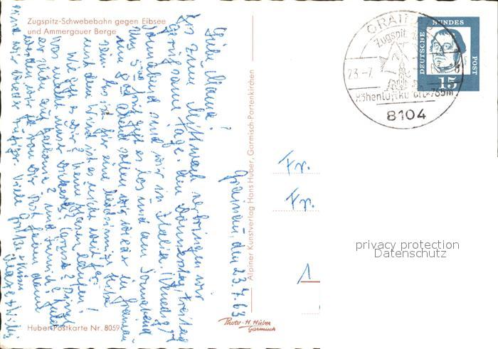 alte Postkarte Seilbahn Zugspitz-Seilbahn Eibsee Ammergauer Berge postalisch gelaufen Erhaltung siehe scans