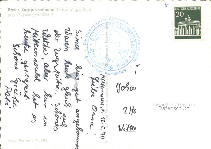 alte Postkarte Seilbahn Zugspitzbahn Eibsee-Zugspitze Zugspitzgipfel postalisch gelaufen Erhaltung siehe scans