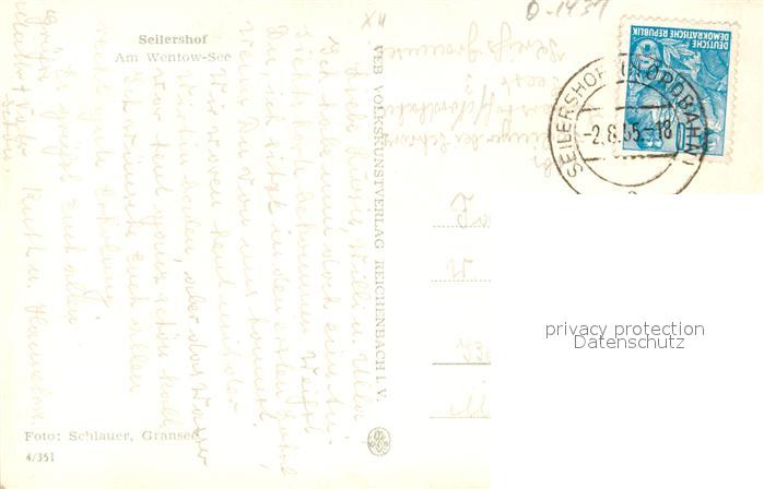 43352488 alte Postkarte Seilershof Am Wentow See postalisch gelaufen Erhaltung siehe scans [WerneD78] KatCode: 11110012065100
