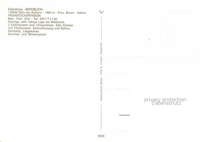 72839541 Seis Schlern Gaestehaus Bergblick postalisch nicht gelaufen Erhaltung siehe scans [AndreD76] KatCode: