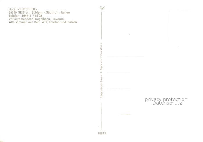 73244866 Seis Schlern Hotel Ritterhof postalisch nicht gelaufen Erhaltung siehe scans [KathaD81] KatCode: