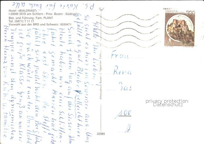 72254200 alte Postkarte Seis Schlern Hotel Waldrast Swimming Pool postalisch gelaufen Erhaltung siehe scans KatCode: