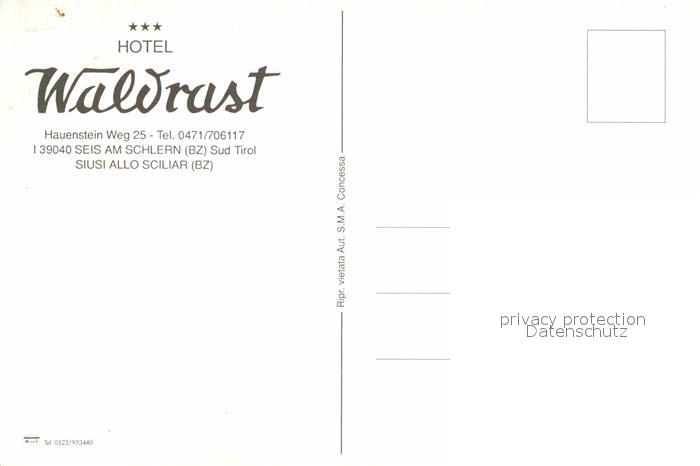72899913 Seis Schlern Hotel Waldrast postalisch nicht gelaufen Erhaltung siehe scans [NatalD47] KatCode: