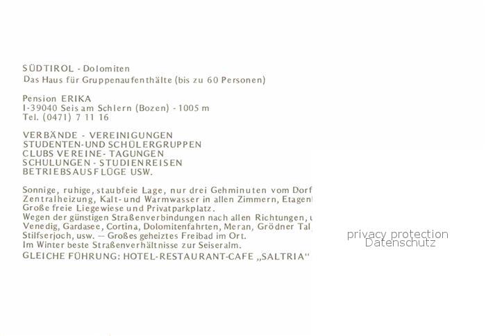 72770394 Seis Schlern Pension Erika im Sommer und im Winter Dolomiten postalisch nicht gelaufen Werbekarte (keine Postkarte) Erhaltung siehe scans [FriedD77] KatCode: