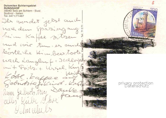 72840324 alte Postkarte Seis Schlern Runghof postalisch gelaufen Erhaltung siehe scans [WerneD78] KatCode: