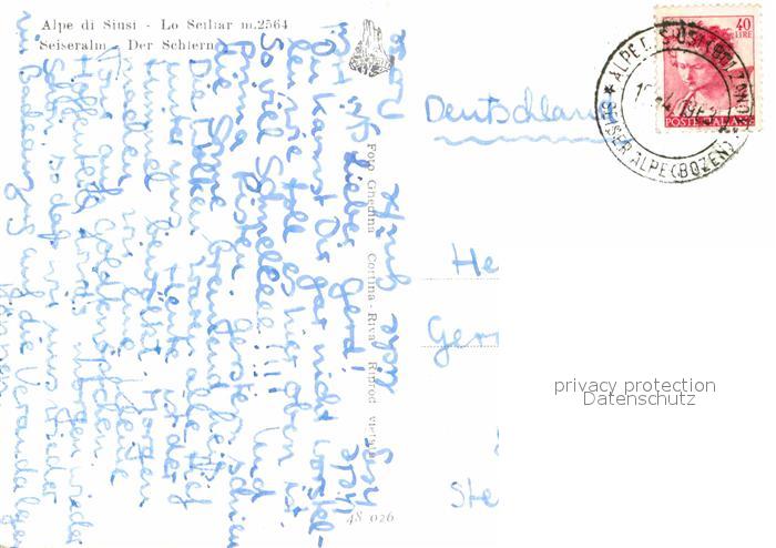 72836074 alte Postkarte Seis Schlern Seiseralm Alpe di Siusi Sciliar postalisch gelaufen Erhaltung siehe scans [PaolaD17] KatCode: