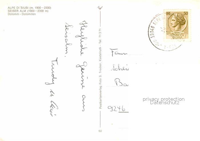 old postcard Seiser Alm Dolomiten Alpe di Siusi Dolomiti Berghotel Dolomiten postalisch gelaufen Erhaltung siehe scans [FriedD77]
