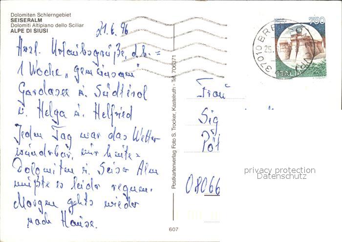 old postcard Seiser Alm Dolomiten Dolomiten Schierngebiet Alphornblaeser postalisch gelaufen Erhaltung siehe scans [LiesaD40]