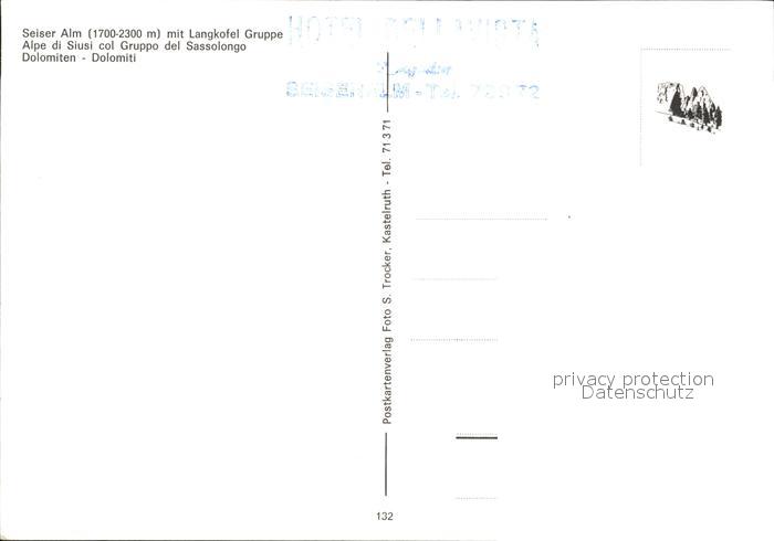 Seiser Alm Dolomiten gegen Langkofelgruppe Dolomiten postalisch nicht gelaufen Erhaltung siehe scans