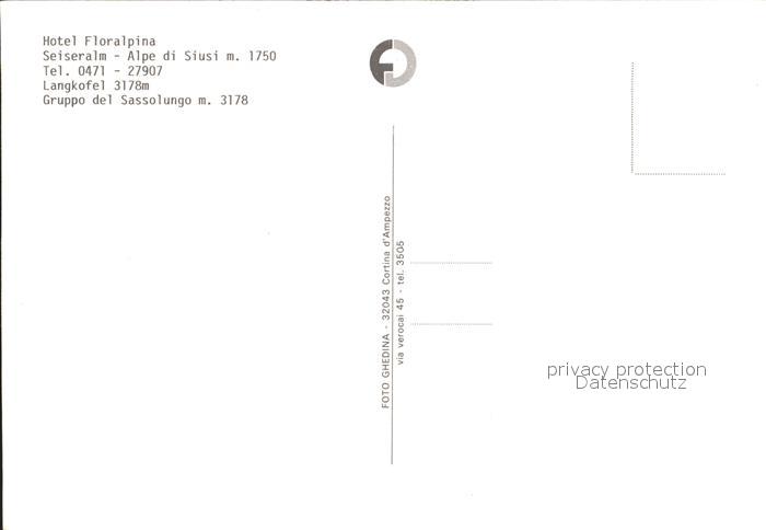 Seiser Alm Dolomiten Hotel Floralpina postalisch nicht gelaufen Erhaltung siehe scans