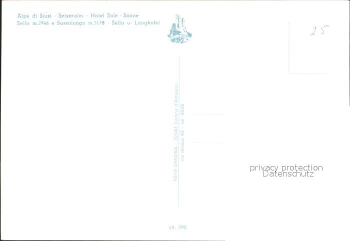 Seiser Alm Dolomiten Hotel Sole Sella Sassolungo Langkofel Sessellift postalisch nicht gelaufen Erhaltung siehe scans