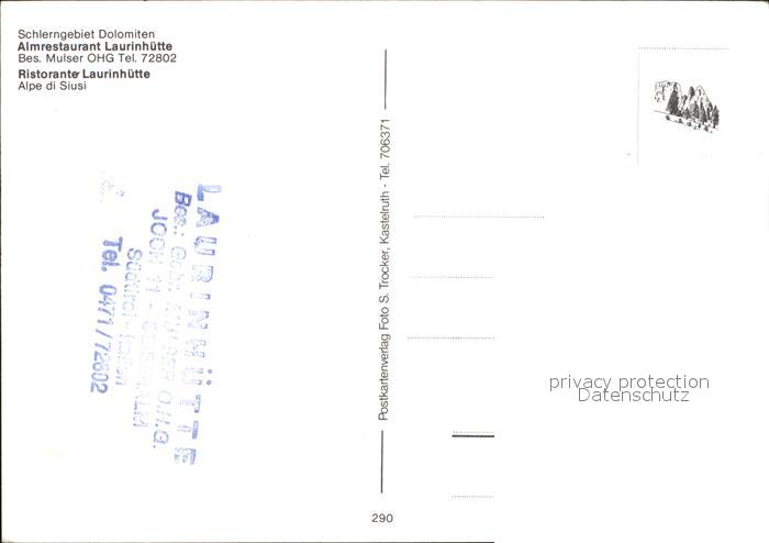 Seiser Alm Dolomiten Laurinhuette postalisch nicht gelaufen Erhaltung siehe scans [NatalD47 kv014box]