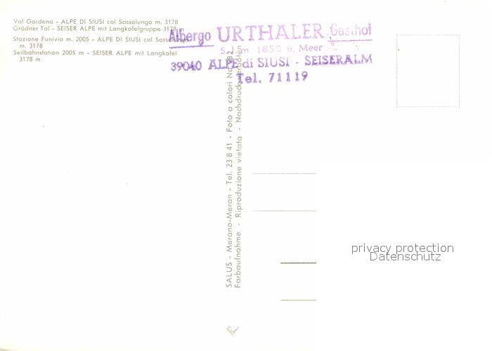 Seiser Alm Dolomiten mit Langkofel Dolomiten postalisch nicht gelaufen Erhaltung siehe scans [FriedD77]