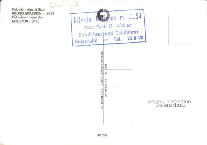 Seiser Alm Dolomiten Molignon Huette postalisch nicht gelaufen Erhaltung siehe scans
