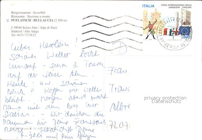 old postcard Seiser Alm Dolomiten Restaurant Puflatsch Bullacia postalisch gelaufen Erhaltung siehe scans