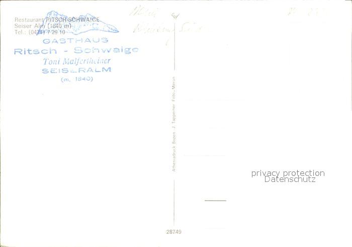 Seiser Alm Dolomiten Restaurant Ritsch Schwaige postalisch nicht gelaufen Erhaltung siehe scans