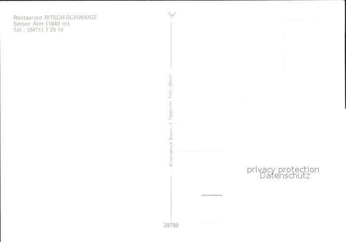 Seiser Alm Dolomiten Restaurant Ritsch Schwaige Terrasse Dolomiten postalisch nicht gelaufen Erhaltung siehe scans