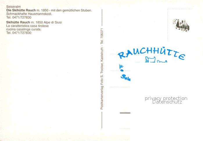 Seiser Alm Dolomiten Skihuette Rauch Dolomiten postalisch nicht gelaufen Erhaltung siehe scans [FriedD77]