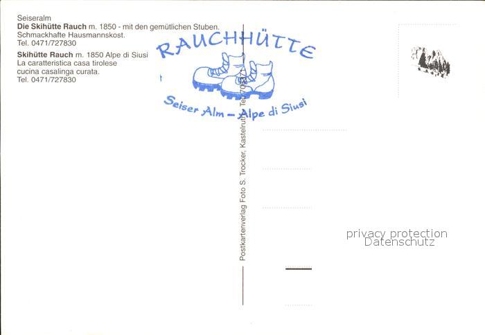 Seiser Alm Dolomiten Skihuette Rauch postalisch nicht gelaufen Erhaltung siehe scans [AndreD76]