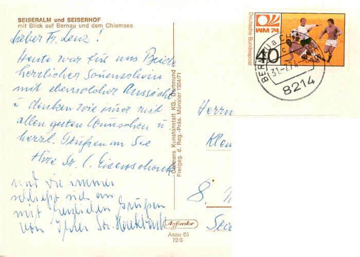 73879217 alte Postkarte Seiseralm Chiemgau und Seiserhof mit Blick auf Bernau und dem Chiemsee Fliegeraufnahme postalisch gelaufen Erhaltung siehe scans [WerneD78] KatCode: 11110009187123