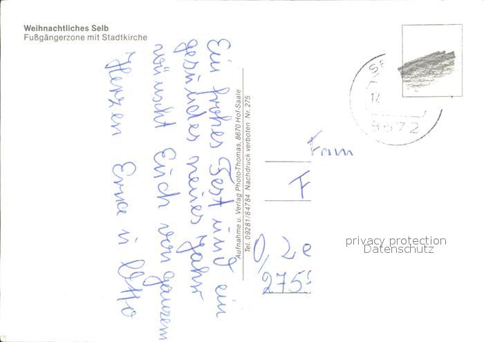 72607761 alte Postkarte Selb Fussgaengerzone mit Stadtkirche zu Weihnachten postalisch gelaufen Erhaltung siehe scans [LiesaD40] KatCode: 11110009479152