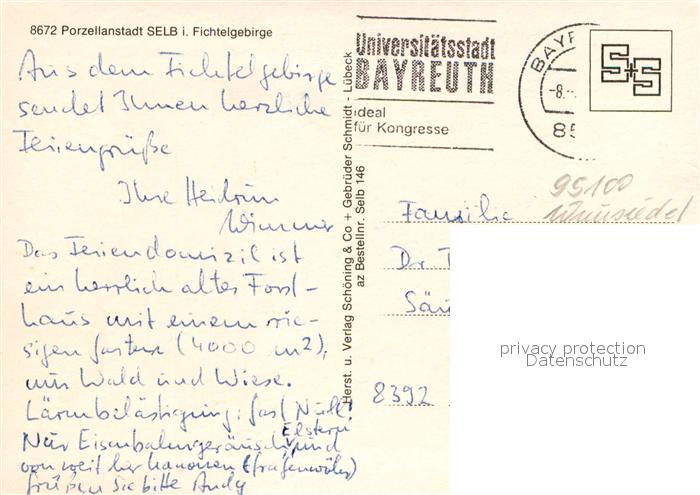 73737084 alte Postkarte Selb Grafenmuehlweiher Rathaus Wunsiedeler Weiher Waldbad Rosenthalhaus Krankenhaus Rosenthalpark Eislaufstadion postalisch gelaufen Erhaltung siehe scans [FriedD77] KatCode: 11110009479152