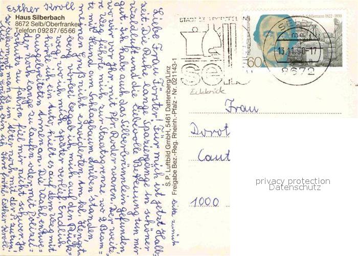 72751716 alte Postkarte Selb Haus Silberbach Fliegeraufnahme postalisch gelaufen Erhaltung siehe scans [FriedD77] KatCode: 11110009479152