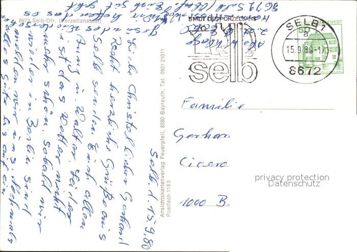 72124866 alte Postkarte Selb Porzellanstadt postalisch gelaufen Erhaltung siehe scans KatCode: 11110009479152