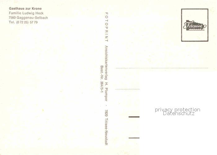 72863264 Selbach Gaggenau Gasthaus zur Krone postalisch nicht gelaufen Erhaltung siehe scans [LiesaD40] KatCode: 11110008216015