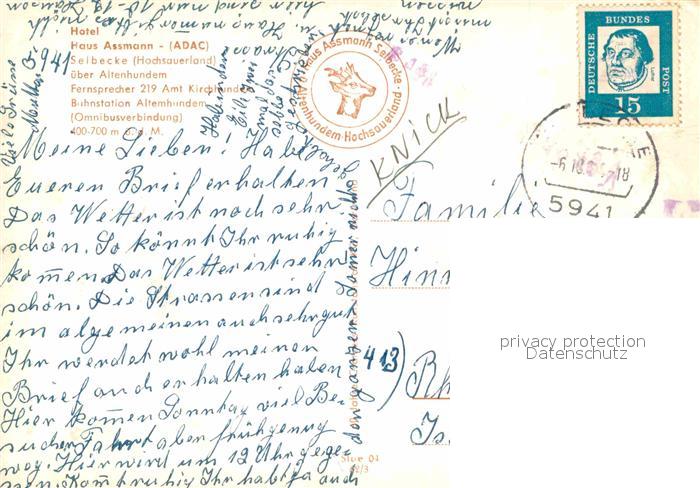 72730653 alte Postkarte Selbecke Hagen Hotel Haus Assmann postalisch gelaufen Erhaltung siehe scans [AndreD76] KatCode: 11110005914000