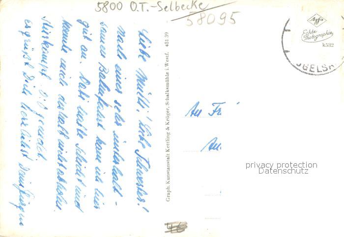 73698838 alte Postkarte Selbecke Hagen Selbecketal Fachwerkhaeuser postalisch gelaufen Erhaltung siehe scans [LiesaD40] KatCode: 11110005914000