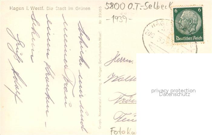 73708114 alte Postkarte Selbecke Hagen Teilansicht postalisch gelaufen Erhaltung siehe scans [LiesaD40] KatCode: 11110005914000
