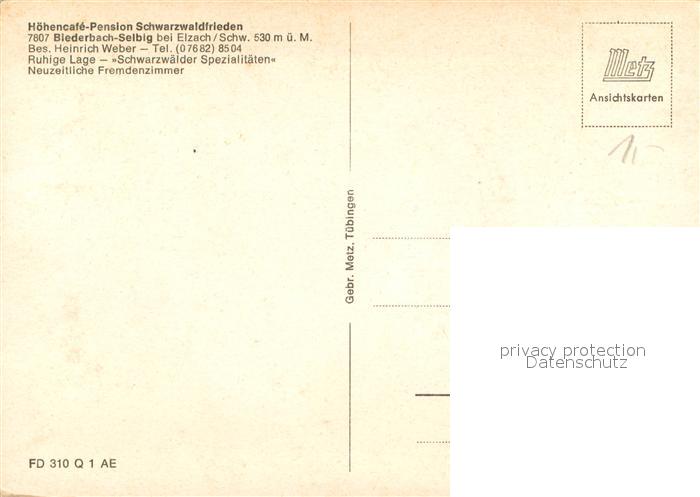 73655371 Selbig Biederbach HoehenCafe Pension Schwarzwaldfrieden Landschaftspanorama Schwarzwald postalisch nicht gelaufen Erhaltung siehe scans [FriedD77] KatCode: 11110008316003