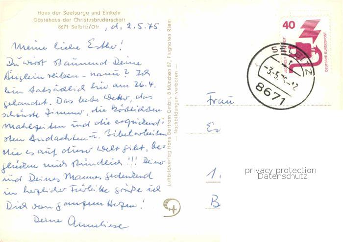 72725768 alte Postkarte Selbitz Oberfranken Christusbruderschaft Gaestehaus Fliegeraufnahme postalisch gelaufen Erhaltung siehe scans [WerneD78] KatCode: 11110009475171