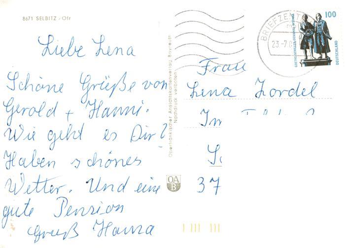 73877965 alte Postkarte Selbitz Oberfranken Fliegeraufnahme postalisch gelaufen Erhaltung siehe scans [FriedD77] KatCode: 11110009475171