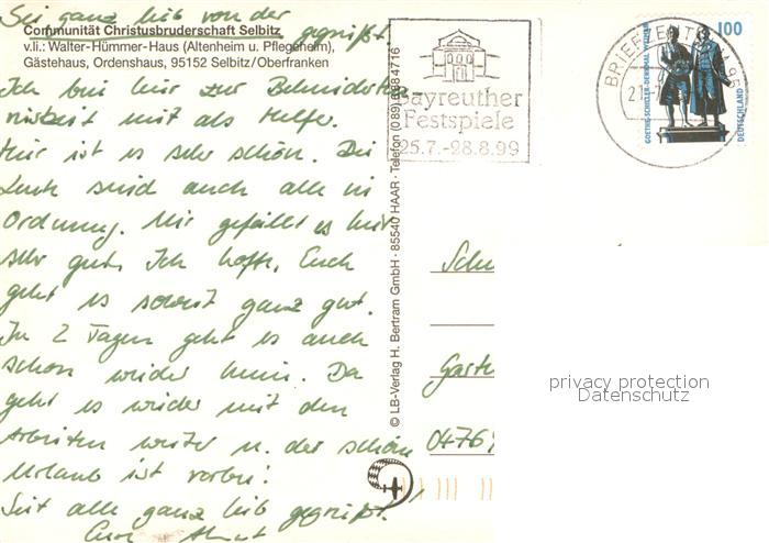 73719391 alte Postkarte Selbitz Oberfranken Fliegeraufnahme Communitaet Christusbruderschaft Selbitz postalisch gelaufen Erhaltung siehe scans [LiesaD40] KatCode: 11110009475171