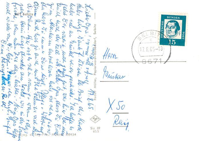73940019 alte Postkarte Selbitz Oberfranken Fliegeraufnahme postalisch gelaufen Erhaltung siehe scans [FriedD77] KatCode: 11110009475171