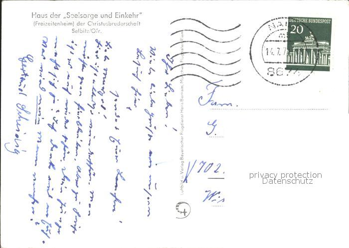 72056269 alte Postkarte Selbitz Oberfranken Haus der Seelsorge und Einkehr Fliegeraufnahme postalisch gelaufen Erhaltung siehe scans KatCode: 11110009475171