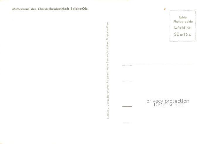 73720342 Selbitz Oberfranken Mutterhaus der Christusbruderschaft postalisch nicht gelaufen Fliegeraufnahme Erhaltung siehe scans [FriedD77] KatCode: 11110009475171