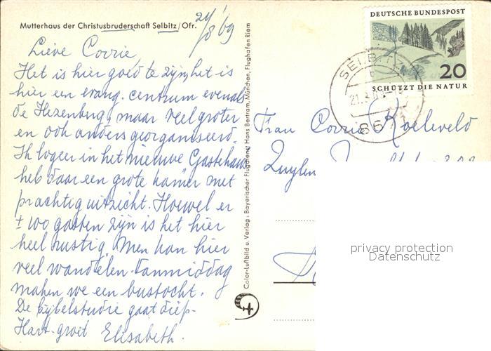 72467123 alte Postkarte Selbitz Oberfranken Mutterhaus der Christusbruderschaft postalisch gelaufen Erhaltung siehe scans KatCode: 11110009475171