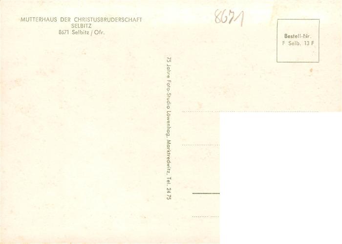 73941315 Selbitz Oberfranken Mutterhaus der Christusbruderschaft postalisch nicht gelaufen Erhaltung siehe scans [FriedD77] KatCode: 11110009475171