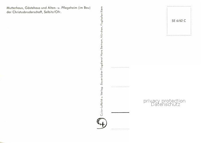72715587 Selbitz Oberfranken Mutterhaus Gaestehaus Altenheim Pflegeheim der Christusbruderschaft Fliegeraufnahme postalisch nicht gelaufen Erhaltung siehe scans [FriedD77] KatCode: 11110009475171