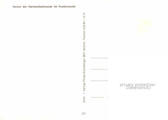 72709437 Selbitz Oberfranken Verein der Harmonikafreunde im Frankenwald postalisch nicht gelaufen Erhaltung siehe scans [FriedD77] KatCode: 11110009475171