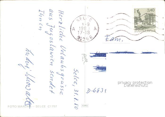 old postcard Selce Crikvenica Segelboot Hafen Trachten postalisch gelaufen Erhaltung siehe scans