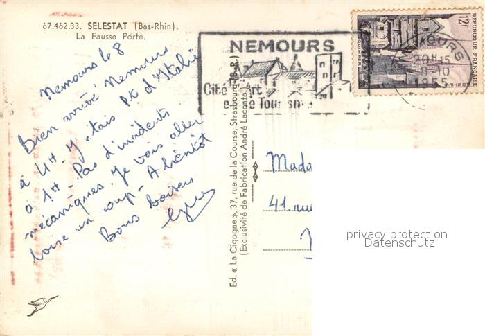 13617398 Selestat Bas Rhin Elsass La Fausse Porte postalisch gelaufen Erhaltung siehe scans [WerneD78] carte postale Wern Katcode 11170067567462